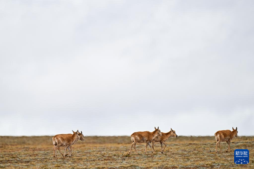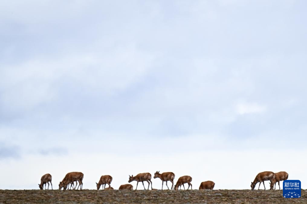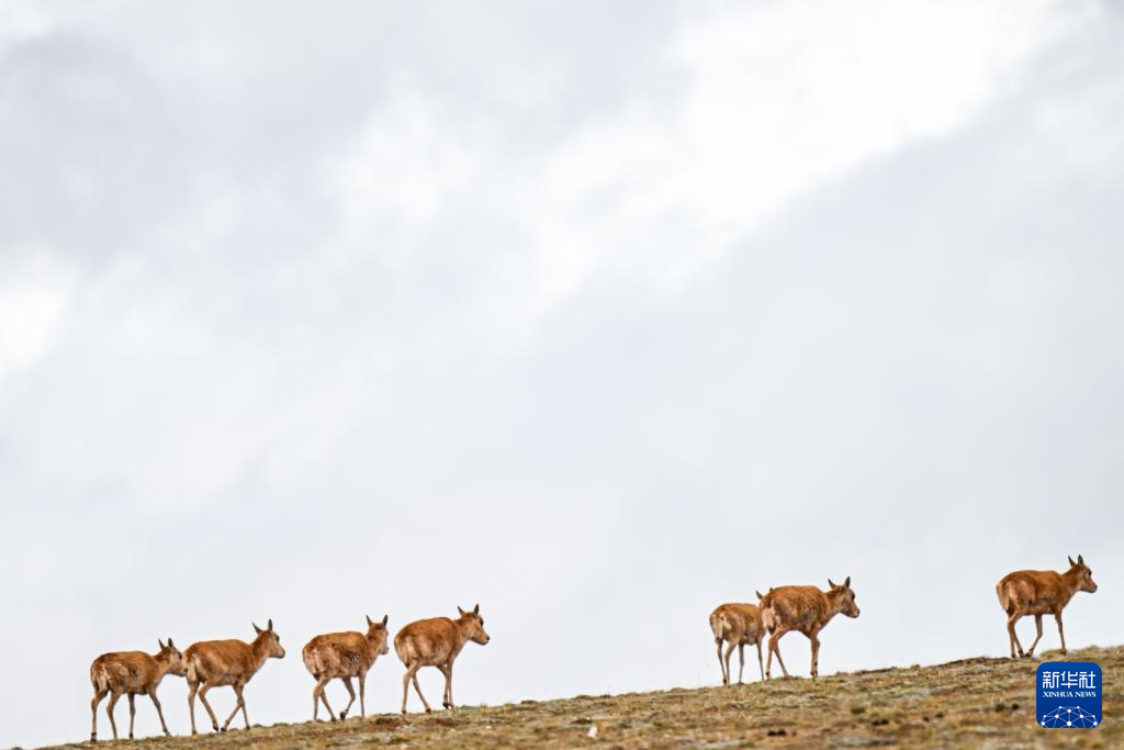 5月27日,藏羚羊在可可西里五道梁地區(qū)遷徙。新華社記者 張龍 攝