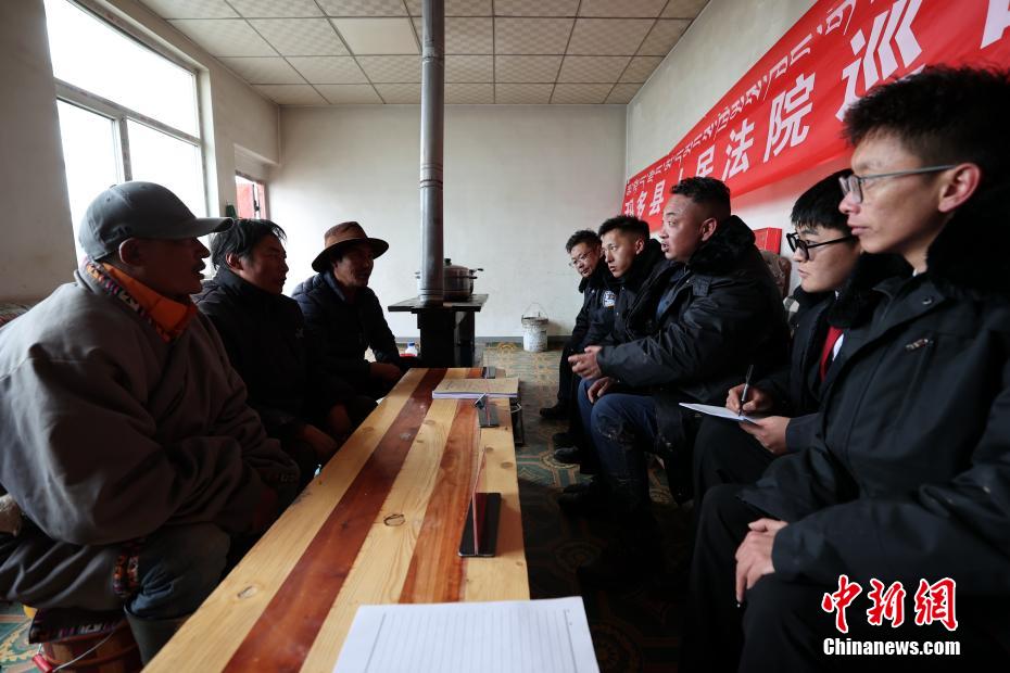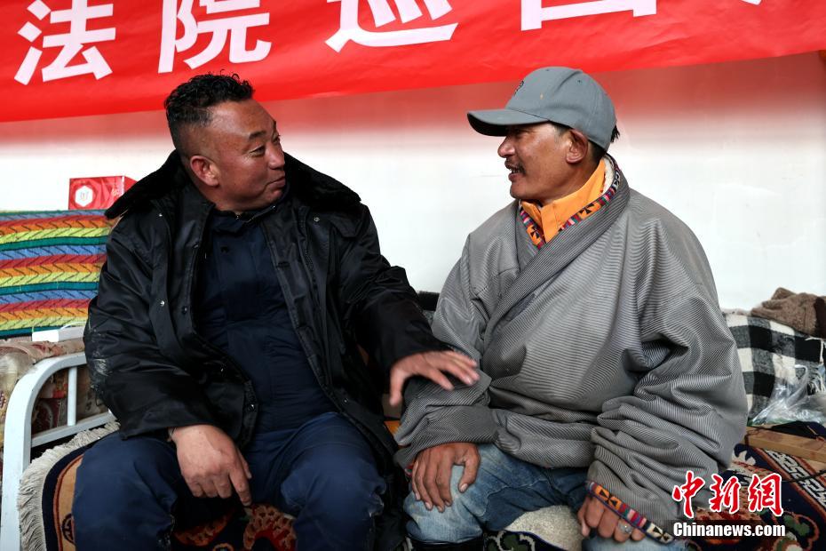 6月3日,在青海省果洛藏族自治州瑪多縣花石峽鎮(zhèn),瑪多縣人民法院“馬背法庭”的法官在牧民家中進行訴前調(diào)解。薛蒂 攝