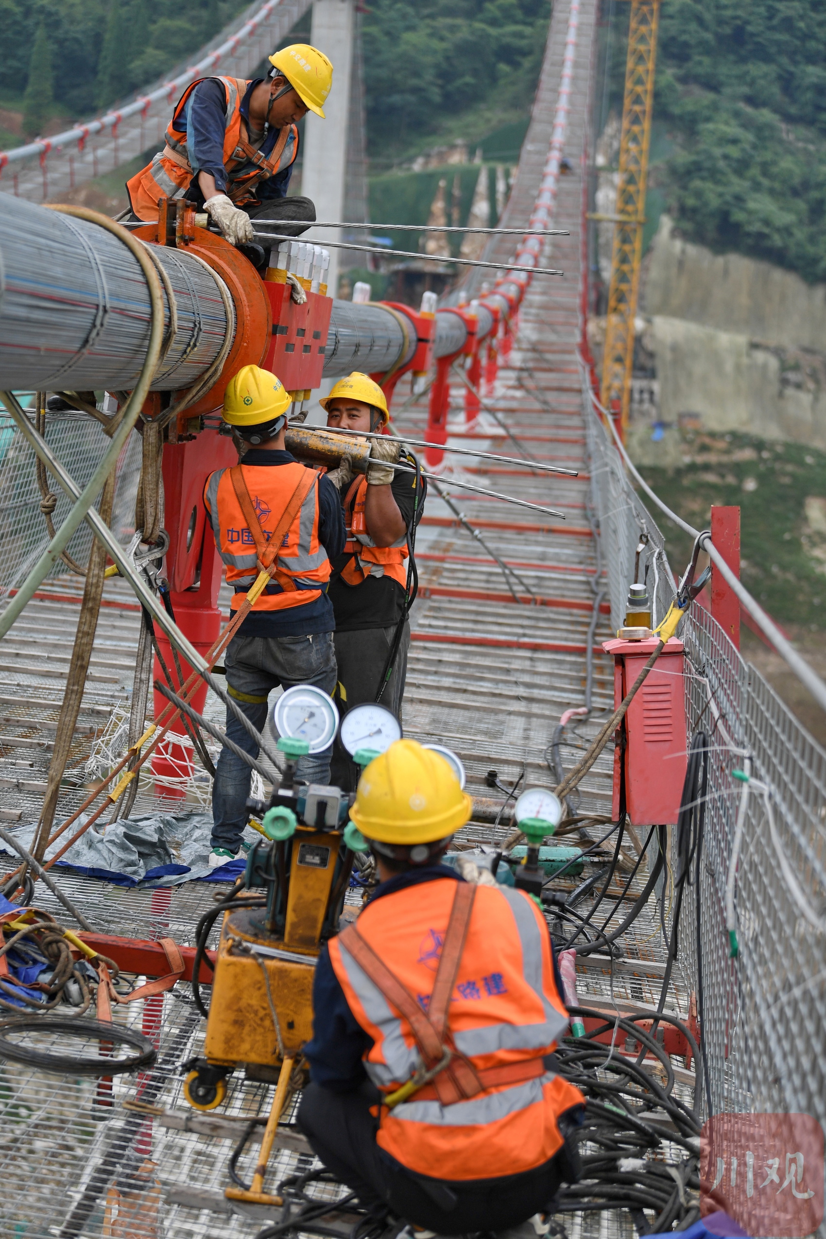施工人員在懸索橋主纜上作業(yè)。李向雨 攝