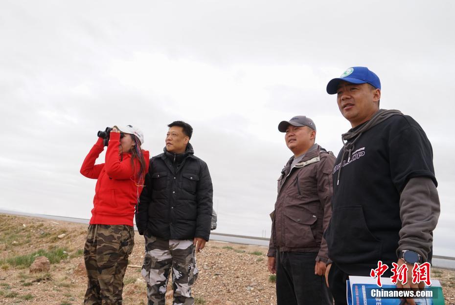 6月20日,在三江源國家公園長江源園區(qū)可可西里管理處索南達(dá)杰保護(hù)站附近,2名生態(tài)管護(hù)員(右一、右二)與游客眺望藏羚羊,并進(jìn)行科普宣傳。中新社記者 馬銘言 攝