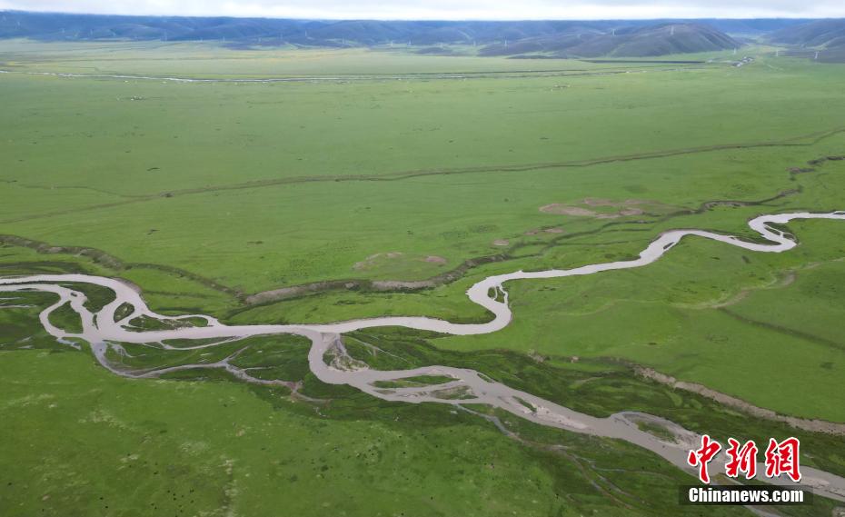 圖為6月26日,無(wú)量河蜿蜒在毛埡草原上。(無(wú)人機(jī)照片)中新社記者 王磊 攝