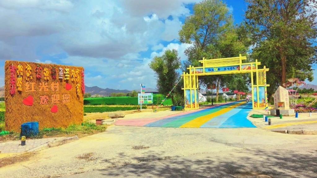一條繽紛亮眼的“彩虹步道”從村口一直向里延伸,“彩虹步道”兩旁種滿了瓜果蔬菜,不遠處還有采摘體驗園和燒烤露營地,在青海省海西蒙古族藏族自治州德令哈市郊的紅光村,別樣的田園風(fēng)情給烈日炎炎下的德令哈增加了一絲清爽。