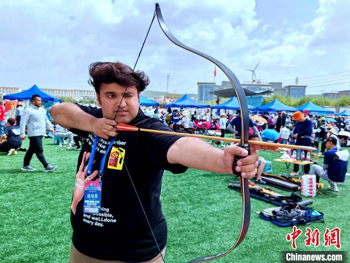 7月20日至23日,第九屆中國·青海國際民族傳統(tǒng)射箭精英賽在青海省海北藏族自治州剛察縣舉行,來自柬埔寨、蒙古國、波蘭、俄羅斯、中國等22個國家和地區(qū)的1100名射箭高手齊聚一堂,展示精湛射箭技藝。本屆賽事設(shè)置現(xiàn)代傳統(tǒng)弓、復(fù)合弓、反曲弓及牛角弓4個弓種,設(shè)置“現(xiàn)代傳統(tǒng)弓混合團(tuán)體和個人”等5個競賽項(xiàng)目。該賽事已成為中國民族傳統(tǒng)射箭比賽中規(guī)格級別最高、民族選手最多、參賽國家和地區(qū)最廣、弓種和項(xiàng)目最全的國際性品牌賽事。圖為7月21日國外運(yùn)動員在青海剛察舉辦的射箭賽場外試弓。中新社記者 李雋 攝