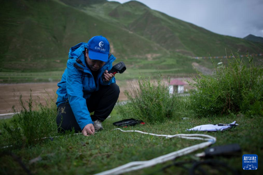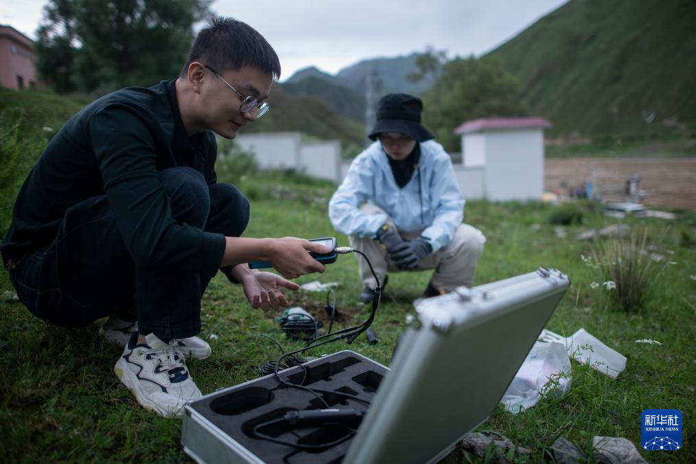 7月20日,在直門達水文站,長江科學院空間信息技術應用研究所廖茂昕(左)和付珺琳進行土壤多參數(shù)檢測。新華社記者 伍志尊 攝