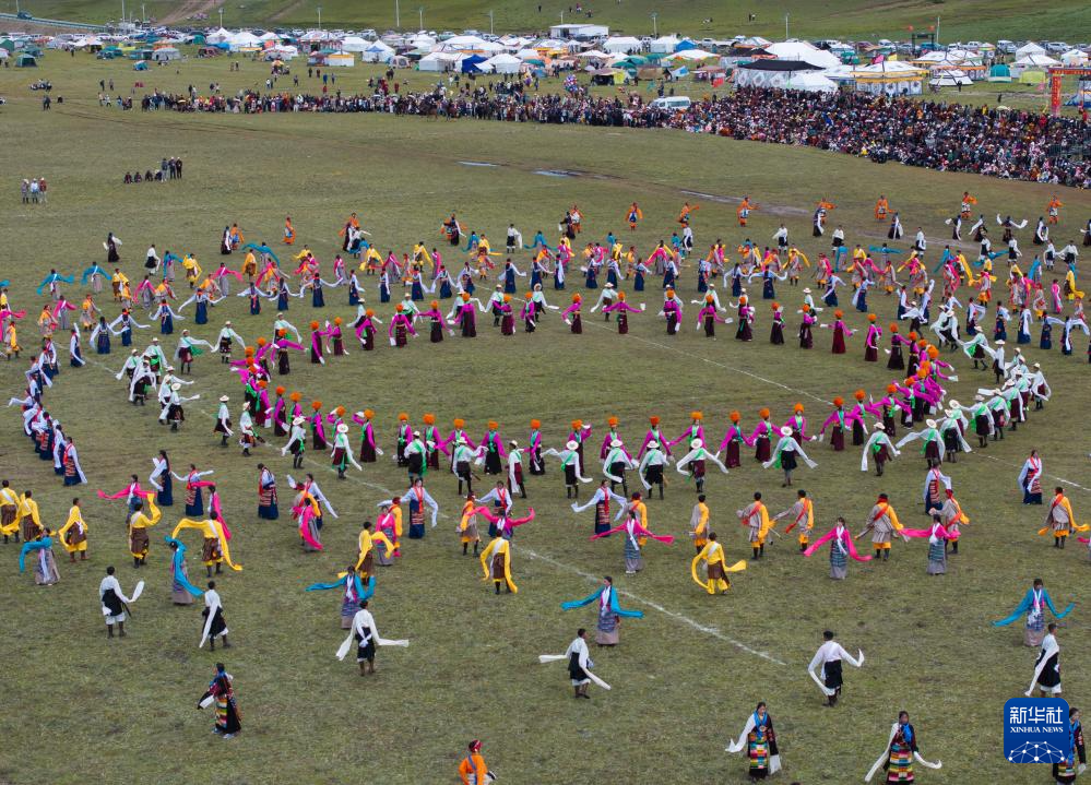 7月30日在理塘縣多旺塘賽馬場拍攝的鍋莊表演。新華社記者 江宏景 攝