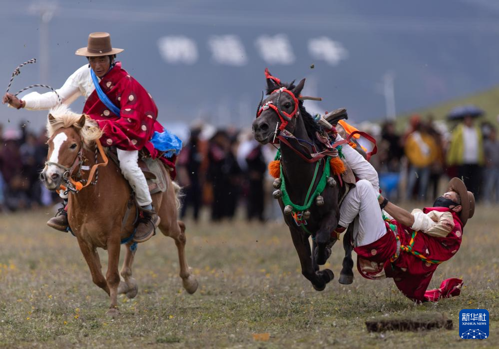 7月30日,四川省甘孜藏族自治州理塘“八一”賽馬會在多旺塘賽馬場啟幕,來自全縣各鄉(xiāng)鎮(zhèn)近千名牧民匯聚一堂。賽馬會上表演的拾哈達、馬上射擊、馬上射箭、鐙里藏身、五彩凌空等馬術絕技,讓當?shù)啬撩窈陀慰拖硎芰艘粓鲆曈X盛宴。