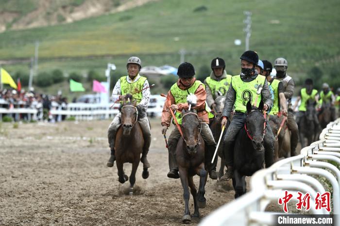 7月30日,四川理塘,比賽現(xiàn)場(chǎng)9號(hào)選手(右一)暫時(shí)領(lǐng)先。中新社記者 劉忠俊 攝