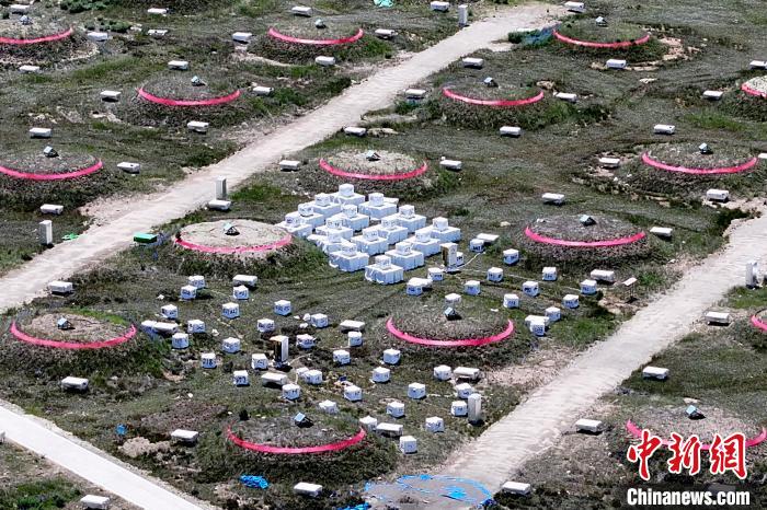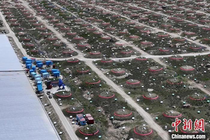 圖為“拉索”一角有序排列的探測器。(無人機照片)中新社記者 劉忠俊 攝