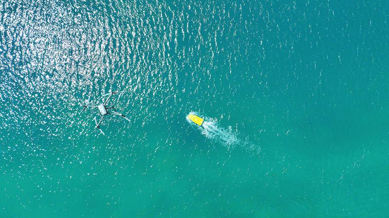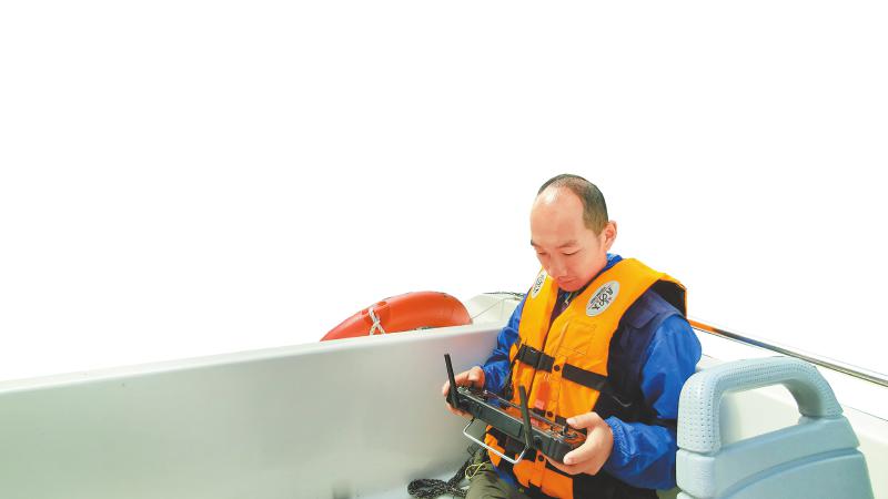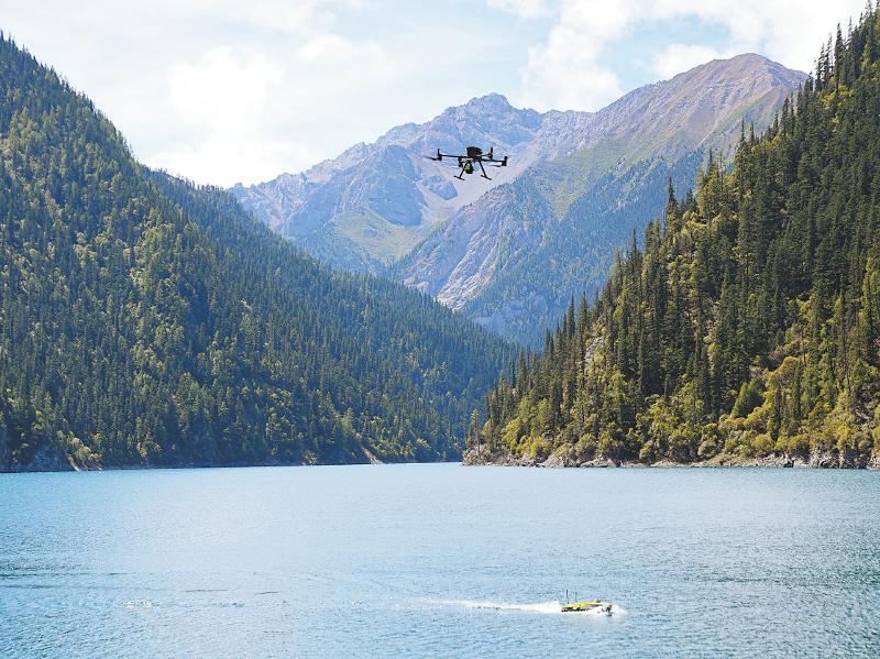 無人船與無人機相互配合,對九寨溝內這個最大、最深的高山湖泊進行水下、水上同步測量。韋維 攝