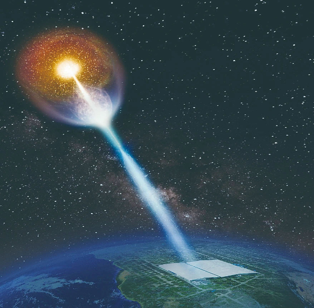 “拉索”探測(cè)伽馬射線暴(GRB 221009A)藝術(shù)圖。中國(guó)科學(xué)院高能物理所供圖