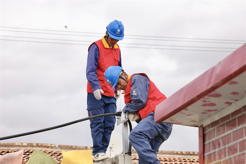 9月28日,在蘇里35千伏輸變電工程投入運行前,國家電網天峻縣供電公司員工在牧民家檢查用電線路。李逸飛 攝