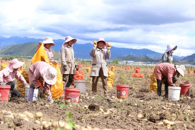 10月13日,記者在位于香格里拉市建塘鎮(zhèn)尼史村的香格里拉市滇茂農(nóng)業(yè)科技有限公司馬鈴薯種薯培育基地看到,百余畝馬鈴薯種薯喜獲豐收,工人們正忙著將機械采挖出的種薯分揀、裝袋、上車,一派繁忙景象。