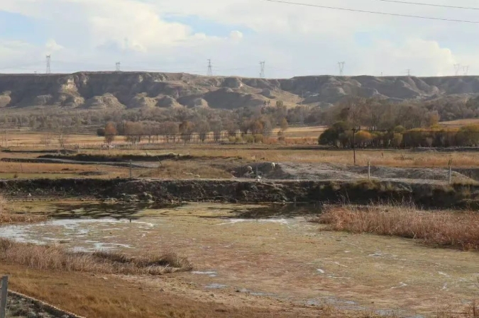 沿著中間的一條小路行走,只見左右兩邊都有鐵網(wǎng)攔著,綠草已經(jīng)有了淺淺的黃,半人高的蘆葦在微風(fēng)中搖曳,大大小小的水洼點(diǎn)綴在其間,陽(yáng)光下像極了明亮的眼睛。