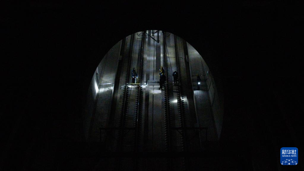 1月14日凌晨,橋隧工在新烏鞘嶺隧道內(nèi)檢查隧道襯砌。新華社記者 郎兵兵 攝