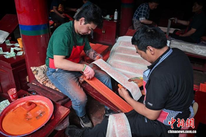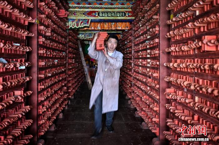 為守護這些珍貴印版,印經(jīng)院的日常維護工作從不松懈。每年工作人員都會對20余萬塊院藏古舊印版進行洗版、晾曬、供油等維護。遇到字體模糊、磨損的印版,70歲的國家級非物質文化遺產(chǎn)代表性項目傳承人彭措澤仁便會帶領工匠們仔細校對,發(fā)現(xiàn)磨損、錯誤后,便用刻刀小心剜下磨損、錯誤部分,重新刻上正確字符鑲嵌上去。在他們的努力下,印經(jīng)院的印版雖歷經(jīng)歲月,卻依然能正常使用,持續(xù)發(fā)揮著文化傳承的作用。