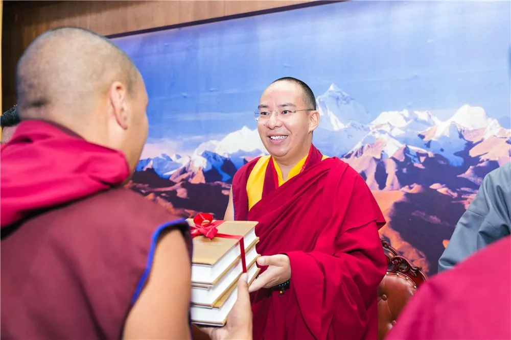 十一世班禪在致辭中指出,歷世班禪是藏傳佛教愛國愛教的一面旗幟。傳承和弘揚歷世班禪大師愛國愛教思想,對于推動藏傳佛教再弘期更好地與中國特色社會主義相適應(yīng),推動藏傳佛教更好地為維護國家統(tǒng)一,促進中華民族團結(jié),維護社會和諧穩(wěn)定服務(wù),具有非常重要的作用?!稓v世班禪文集》歷史意義深遠。以書刊為媒介符合時代潮流,能夠讓廣大的信教群眾,宗教界專家學者,特別是年輕一代更便捷,更系統(tǒng)學習歷世班禪愛國愛教思想的精髓。他希望藏傳佛教界人士,要以藏傳佛教歷代愛國愛教先賢大德為榜樣,感恩黨,感恩祖國,努力聞思顯密精要,為眾生帶來利樂。