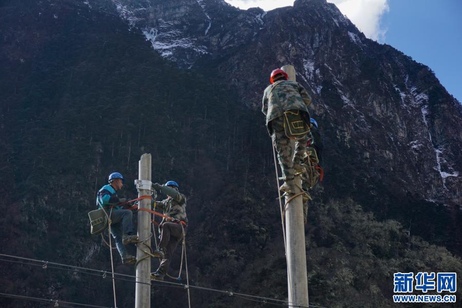 西藏玉麥鄉(xiāng)電力線路全線貫通,圖為工人在玉麥鄉(xiāng)境內(nèi)施工(2017年12月17日攝)。新華社發(fā)(白峰 攝)