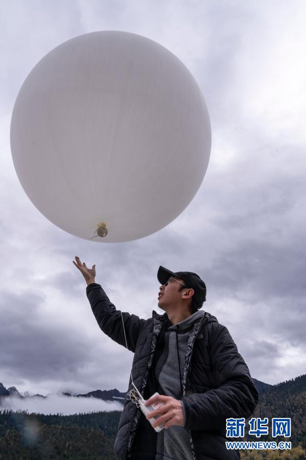 2019年10月21日,隨著探空氣球成功施放并進(jìn)入萬米高空收集大氣垂直數(shù)據(jù),第二次青藏科考“地氣相互作用及其氣候效應(yīng)”觀測試驗第三階段在西藏林芝啟動。新華社記者 孫非 攝