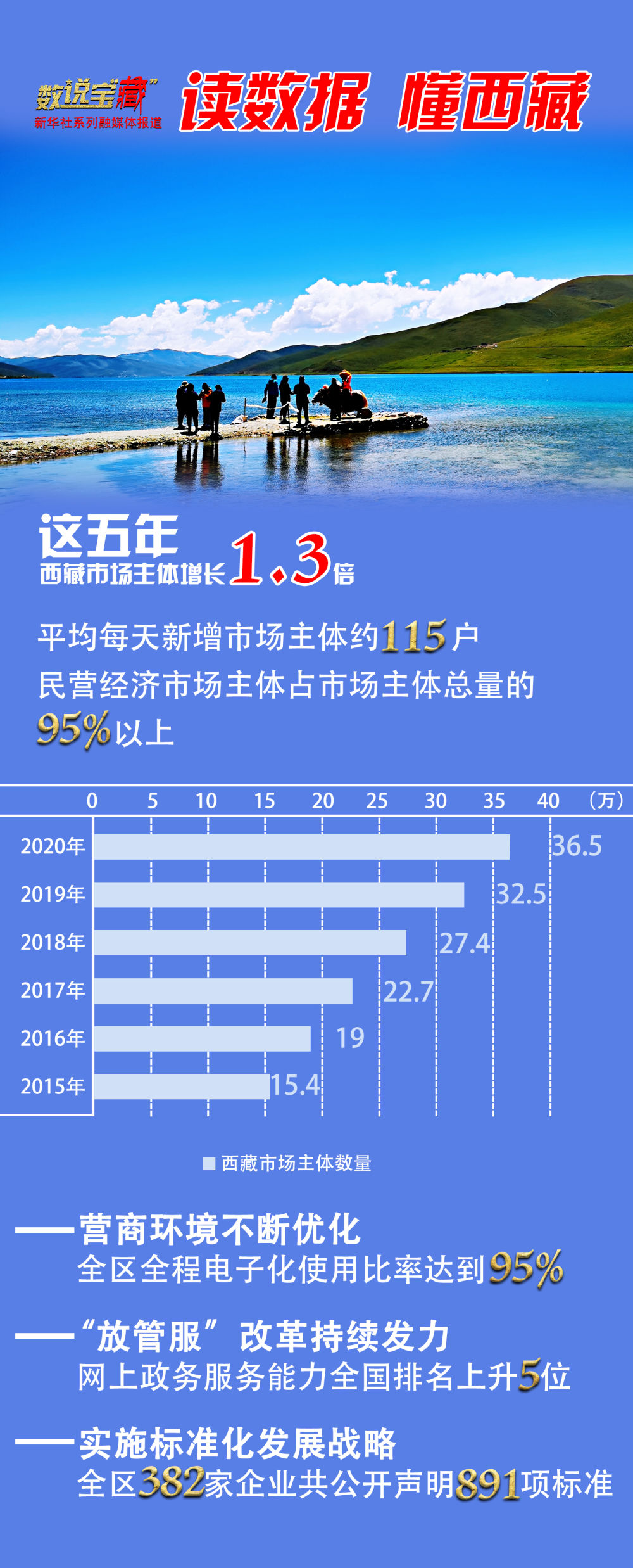 “十三五”期間,西藏市場主體活力不斷被激發(fā),群眾創(chuàng)業(yè)辦事便利度、滿意度顯著提升。西藏自治區(qū)政府統(tǒng)計(jì)數(shù)據(jù)顯示,目前西藏市場主體數(shù)量已達(dá)36.5萬戶,較“十二五”末增長了1.3倍,5年來平均每天新增市場主體約115戶。