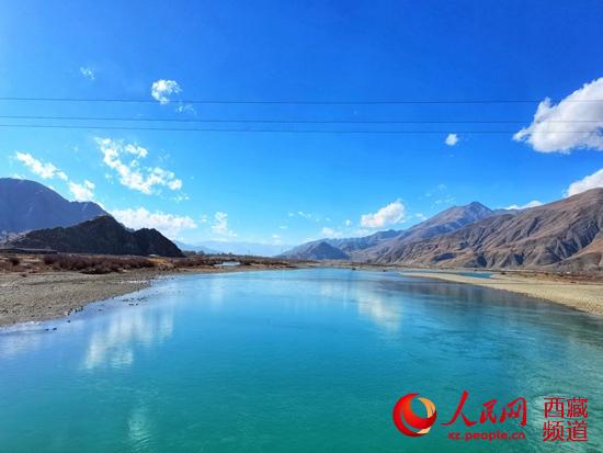 進(jìn)入枯水期,達(dá)孜大橋下的水雖不復(fù)往日奔騰澎湃景象,但水面也有近百米寬。波光粼粼的水面,像一條綠色綢帶,各類水鳥飛舞其上,不知不覺就讓人看迷了?!斑@些水最終要流到濕地里去,你看,多清澈啊?!蹦岈敹嗉袊@。