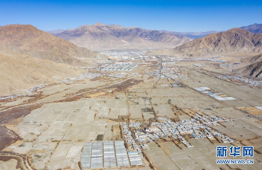 這是西藏山南市乃東區(qū)克松村社區(qū)農(nóng)業(yè)產(chǎn)業(yè)生產(chǎn)基地(2月9日攝,無人機照片)。新華社記者 普布扎西 攝