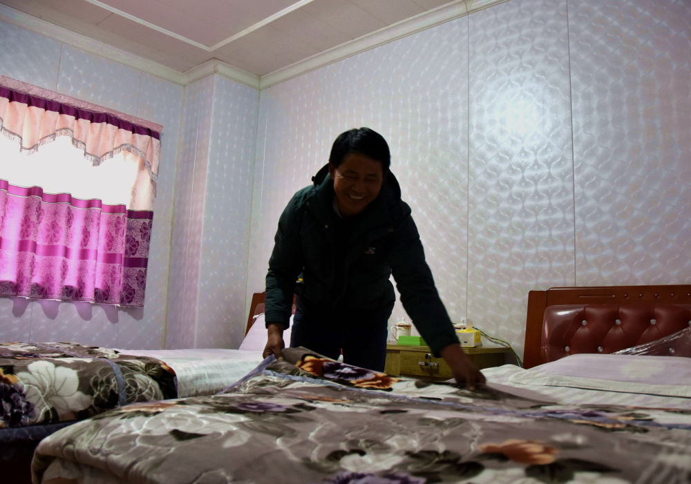 下午四五點,走進村民旺青家,一家人正在吃飯。他們是2019年從隆子縣熱榮鄉(xiāng)搬遷而來的,夫妻倆整天都在忙家庭旅館裝修的事?!耙恢泵Φ竭@個點,才吃午飯。夏天游客多,客房供不應求,趁著快過春節(jié)和藏歷新年了,客人少了,趕緊對客房和餐館進行改造升級。”旺青說,“夏天我在外跑運輸,妻子在家經(jīng)營客棧,家庭年收入超過10萬元,親戚朋友都很羨慕。我計劃再攢點錢買輛載貨量更大的卡車。”