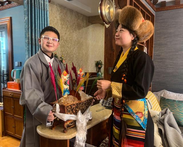 2月12日拍攝的著盛裝的拉薩市當(dāng)雄縣藏族牧民。新華社記者 覺果 攝
