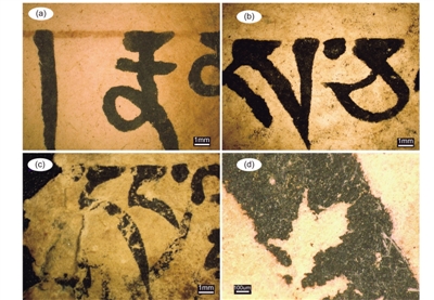 測定藏紙的年代,主要有兩種方法,一種是通過藏文的字體及內(nèi)容判定大致年代,還有一種是碳14測年技術。論文第一作者、中國科學院大學特別研究助理韓賓博士介紹,他們在請藏文專家進行文字預判的基礎上,在兩個不同的實驗室對藏紙樣品開展了碳14測年。結果表明該組殘片為12—13世紀古紙殘片。測年數(shù)據(jù)的一致性,也表明碳14測年技術可以很好地判定藏紙的年代,為后續(xù)藏紙的研究提供了參考。