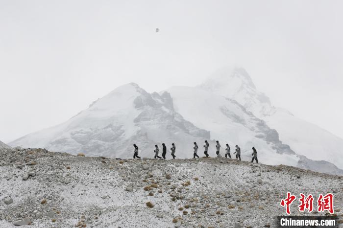 珠峰邊境派出所民警們?cè)谥榉搴诵膮^(qū)域開展巡邏。彭維熙 攝