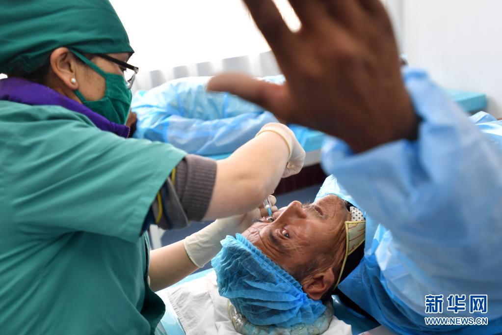 3月25日,78歲的白內(nèi)障患者斯多通過(guò)手術(shù)重見光明。新華社記者 覺(jué)果 攝