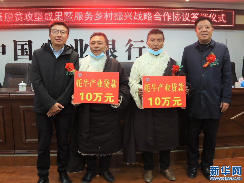 近日,拉薩市當(dāng)雄縣人民政府與中國(guó)農(nóng)業(yè)銀行拉薩分行、西藏財(cái)信融資擔(dān)保有限公司簽訂鞏固拓展脫貧攻堅(jiān)成果暨服務(wù)鄉(xiāng)村振興戰(zhàn)略合作協(xié)議,并發(fā)放5筆精準(zhǔn)扶貧小額到戶貸款,13筆“惠農(nóng)e貸”,2筆“牦牛產(chǎn)業(yè)貸款”。