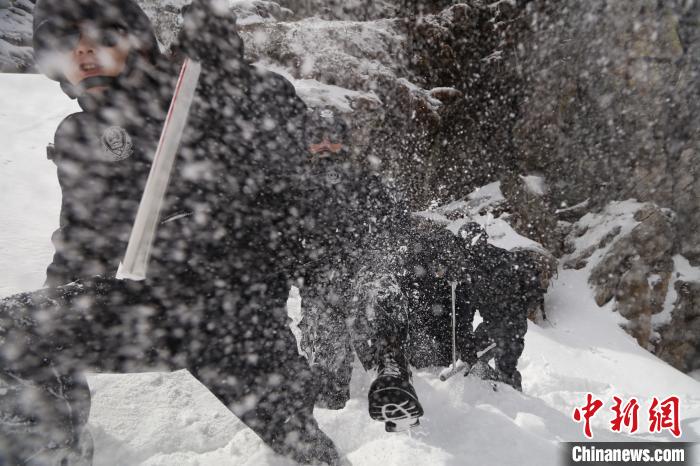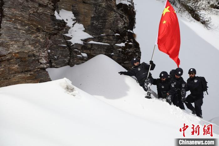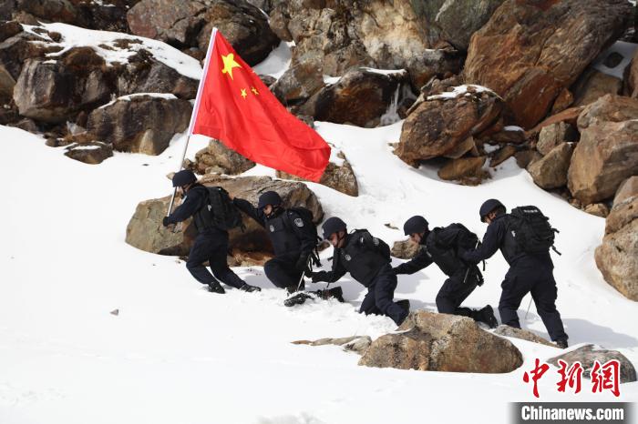 民警們一路趟冰河、翻雪山,向目標點位艱難前行。隨著海拔升高,含氧量降低,即使是西藏本地人,初上乃堆拉的阿旺邊巴也開始氣喘吁吁。