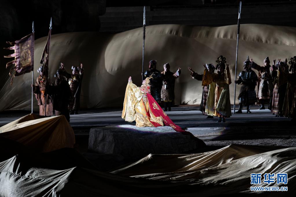 4月10日,演員在大型實(shí)景劇《文成公主》中表演。新華社 孫瑞博 攝