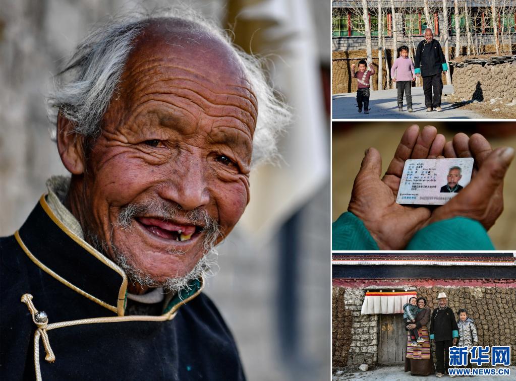 這是一張拼版照片,左圖為達(dá)國(guó)杰的肖像(3月22日新華社記者張汝鋒攝);右上圖為達(dá)國(guó)杰和孫子孫女在村子里散步(3月22日新華社記者張汝鋒攝);右中圖為達(dá)國(guó)杰的身份證(3月22日新華社記者張汝鋒攝);右下圖為達(dá)國(guó)杰和家人在家門前合影留念(3月22日新華社記者孫瑞博攝)。新華社發(fā)