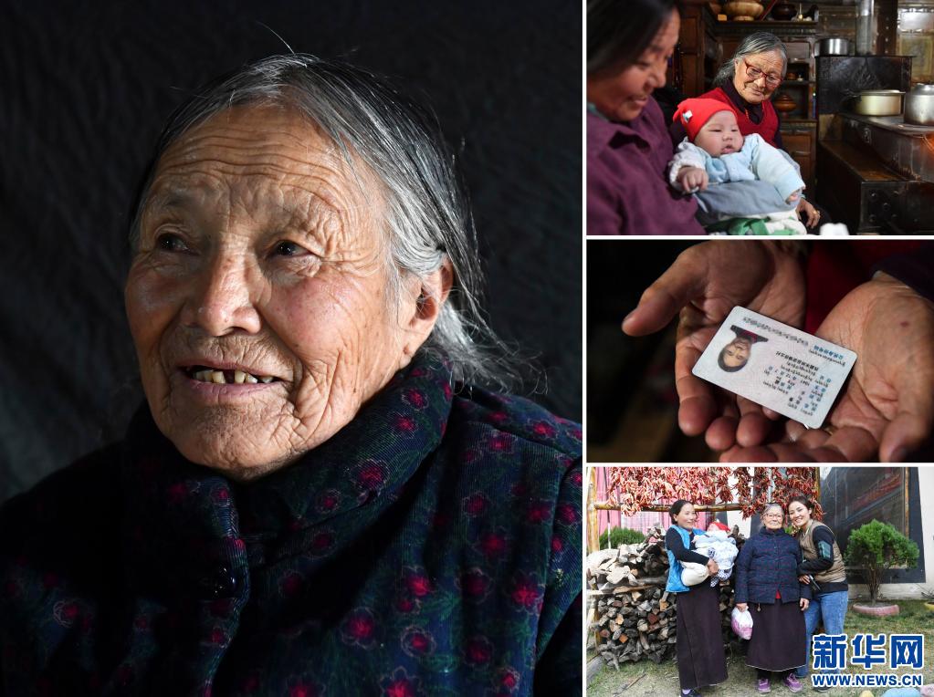 這是一張拼版照片,左圖為次培的肖像(3月22日新華社記者普布扎西攝);右上圖為次培老人在家里整理衣服(3月22日新華社記者晉美多吉攝);右中圖為次培老人的身份證(3月22日新華社記者晉美多吉攝);右下圖為次培老人和女兒們的合影(3月22日新華社記者普布扎西攝)。新華社發(fā)