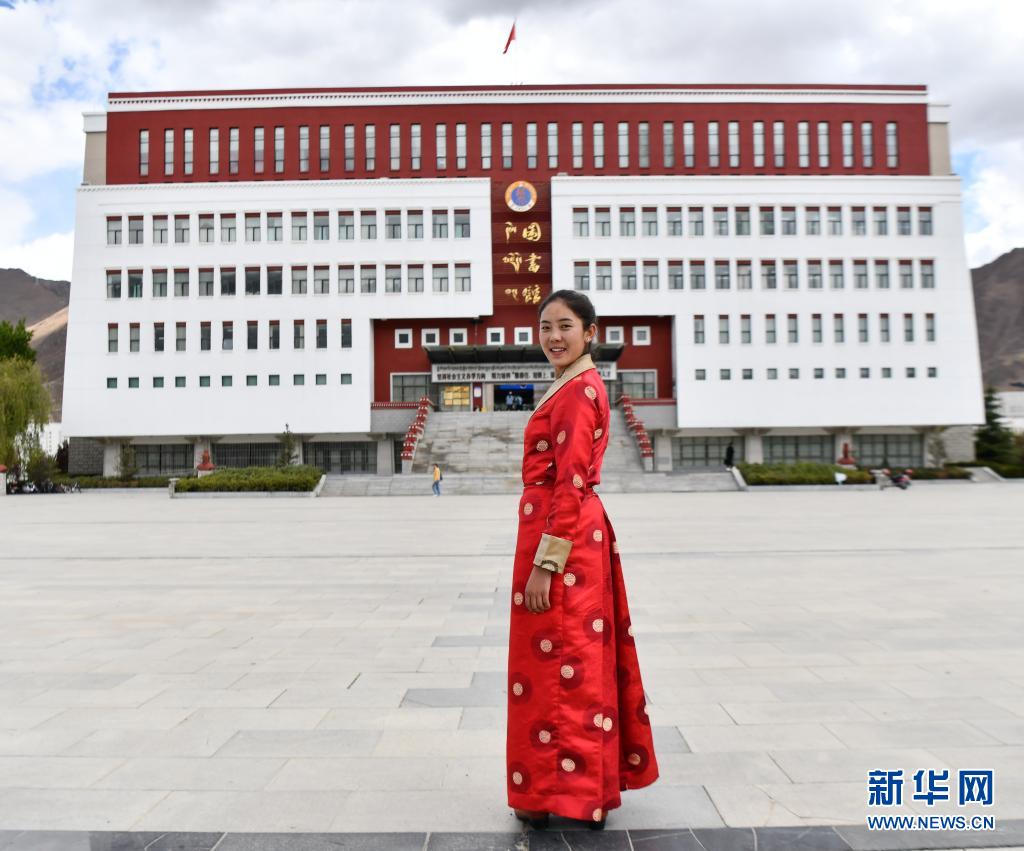 拉增在西藏大學(xué)圖書館前留影(5月7日攝)。新華社記者 晉美多吉 攝