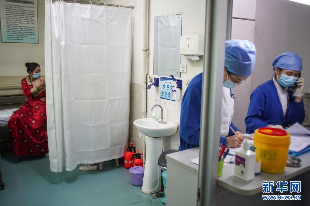 5月11日,拉增(左)在接受動員劑注射。新華社記者 彭子洋 攝