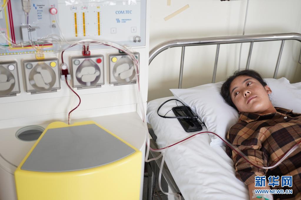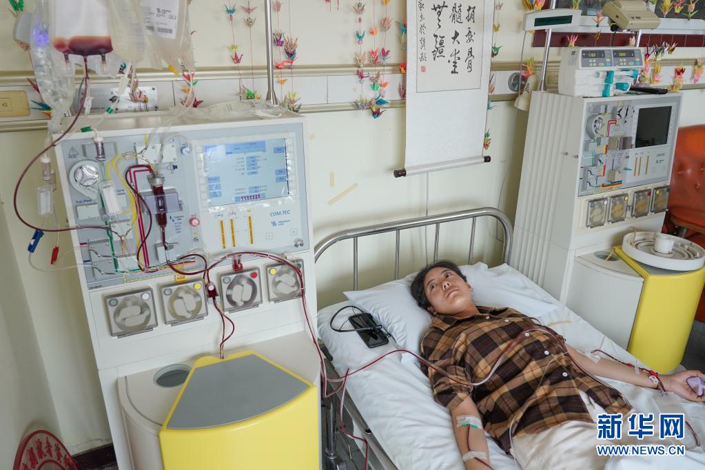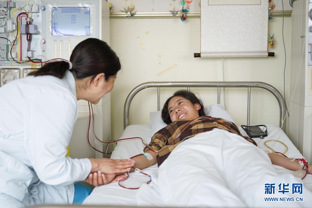 醫(yī)生摸著拉增的手和她聊天,造血干細(xì)胞整個采集時間需要近4個小時(資料圖片)。新華社記者 彭子洋 攝