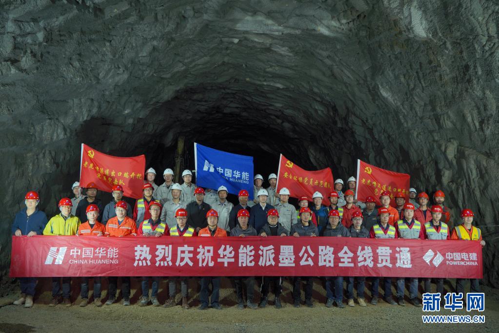5月16日,派墨公路建設(shè)者共慶派墨公路全線貫通。新華社發(fā)(董志雄 攝)