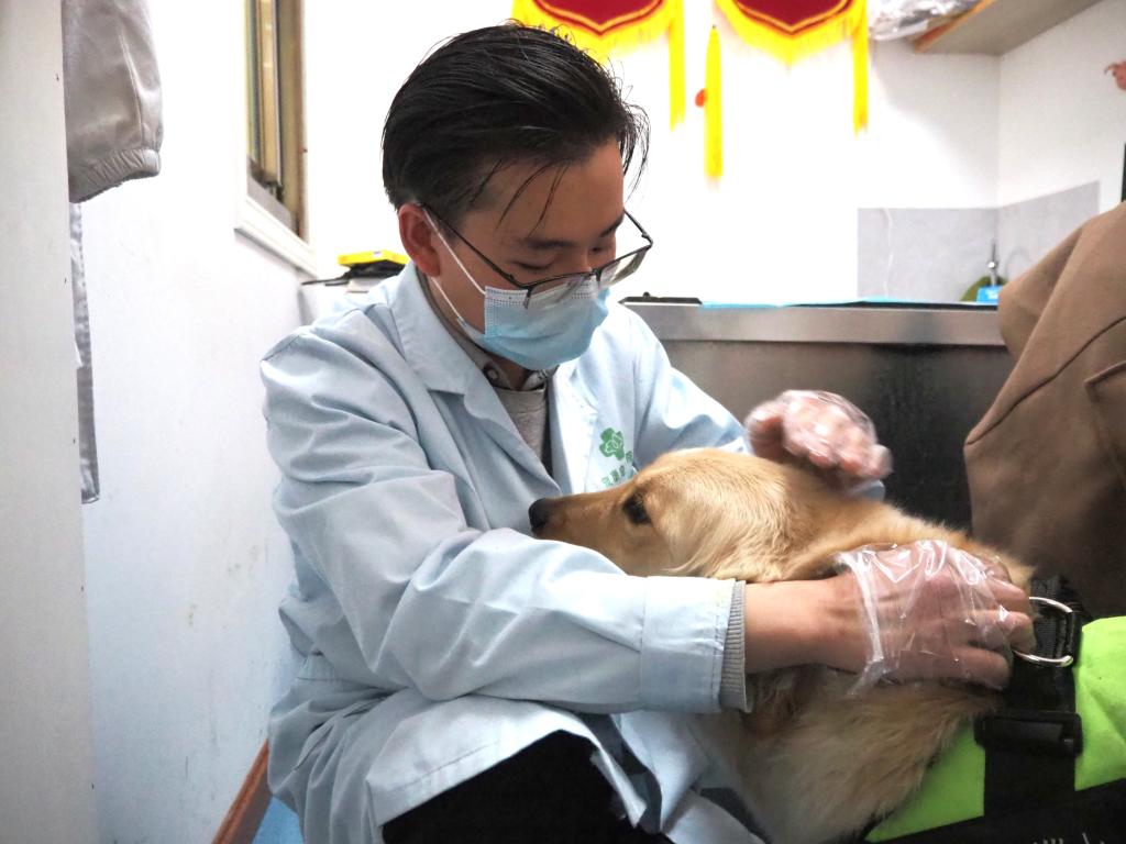 薛禎寧正在給寵物檢查身體。新華社記者 金一清 攝