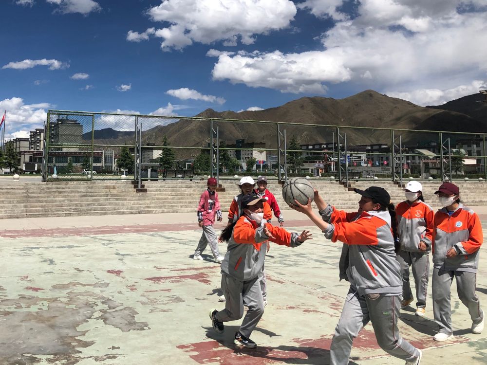 6月的拉薩雖然氣溫只有20多度,但高原的日光仍然照得人火辣辣的。在一片綠色的水泥籃球場上,五六個男孩正在進(jìn)行一場籃球比賽。定睛一看,他們之中,一個藏族女孩的矯健身影尤為顯眼。