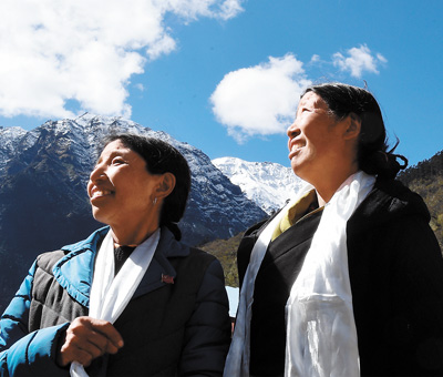 卓嘎(左)、央宗姐妹倆在一起。新華社記者 普布扎西 攝