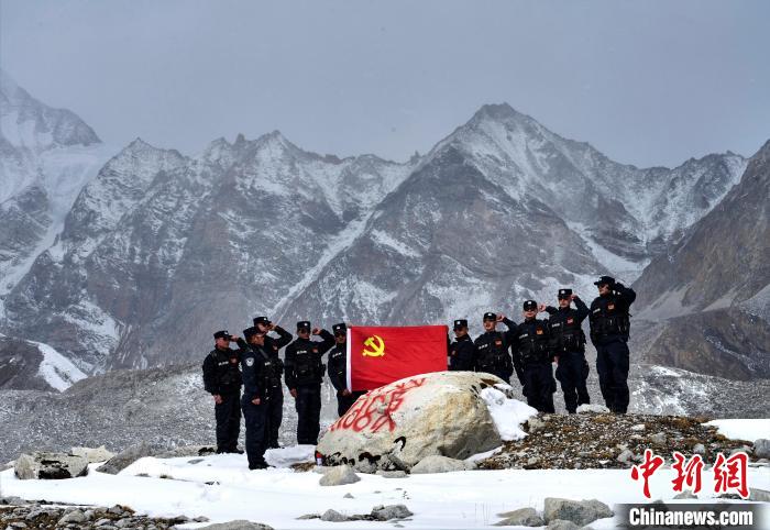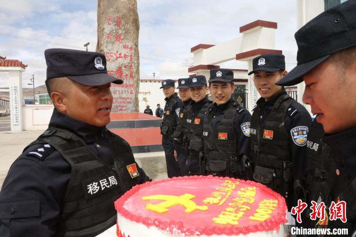 在全國海拔最高的行政鄉(xiāng)普瑪江塘,邊境派出所組織民警在轄區(qū)海拔5600米的崗布冰川開展邊境巡邏工作,并巧手制作了慶祝黨的100年主題生日蛋糕,用實際行動向建黨100周年獻禮。