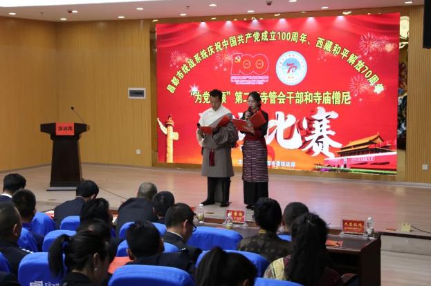 7月2日,昌都市委統(tǒng)戰(zhàn)部以慶祝中國共產(chǎn)黨成立100周年、西藏和平解放70周年“為黨贊頌”為主題,舉辦全市第二屆寺管會干部和僧尼演講比賽,市委常委、統(tǒng)戰(zhàn)部長,市政協(xié)黨組副書記澤仁俊美出席,市委宗教工作領(lǐng)導(dǎo)小組成員單位負(fù)責(zé)人和強(qiáng)巴林寺、卡若區(qū)寺管會干部代表、僧尼代表觀看了比賽。市委組織部、市委宣傳部、市委統(tǒng)戰(zhàn)部、市民委、市文化局、市宗教局等單位負(fù)責(zé)人擔(dān)任評委。
