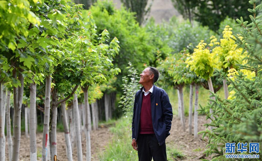 山南市扎囊縣某苗圃基地負(fù)責(zé)人邊久在查看基地內(nèi)栽種的樹苗(7月20日攝)。新華社記者 晉美多吉 攝