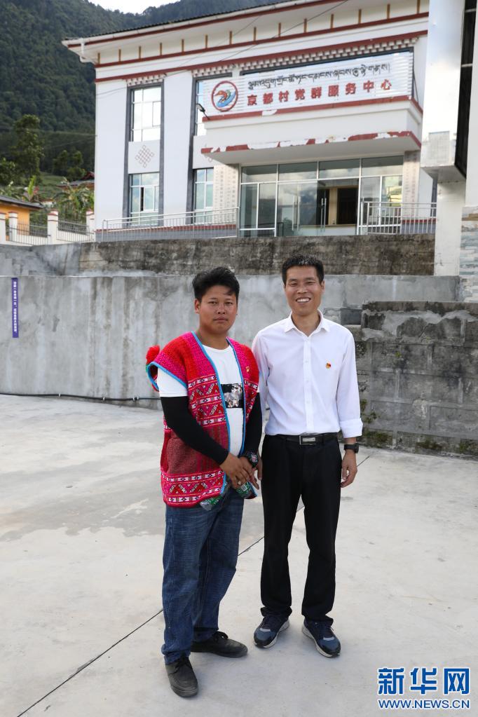 京都村黨支部書(shū)記廖澤路(左)和駐村工作隊(duì)負(fù)責(zé)人徐俊杰合影(7月22日攝)。新華社記者 金立旺 攝