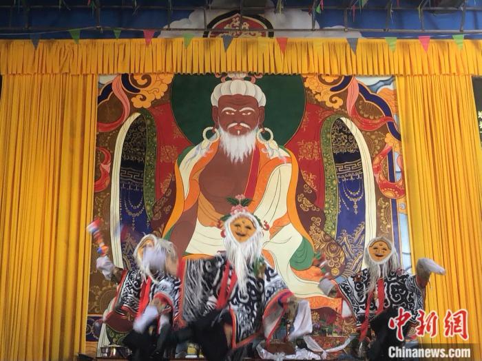 扎西曲登社區(qū)在進行雅礱扎西雪巴藏戲表演。 中新網(wǎng)左宇坤 攝