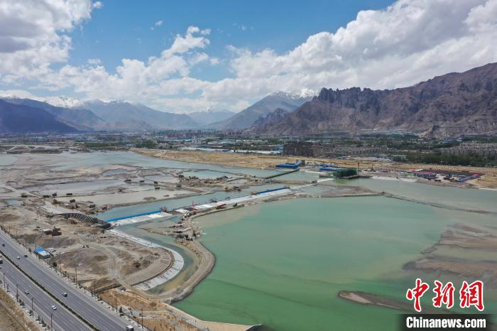圖為西藏拉薩河河勢(shì)控導(dǎo)工程(濱河花園段)成功下閘蓄水 水電基礎(chǔ)局 供圖