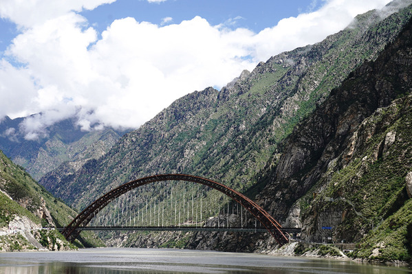藏木雅魯藏布江雙線特大橋全長525.1米,主拱跨徑430米。記者 劉洪明 攝