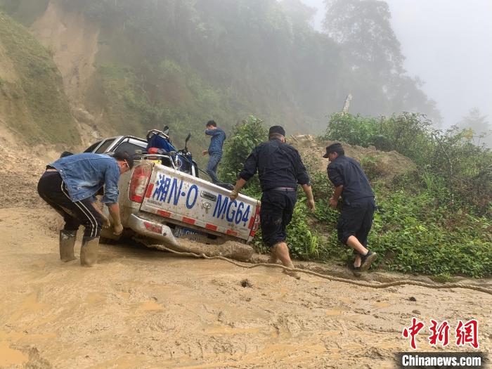 同時,參加救援的民警對斜坡進(jìn)行加固,預(yù)防雨水沖刷下來的碎石、樹枝等雜物造成次生災(zāi)害。其余民警則徒手挖泥,搬碎石,將車輛從水渠處墊高,用牽引繩迅速將被困車輛從塌陷處拽出來,整個過程,民警們頭頂大雨,腳踩淤泥,他們以實(shí)際行動踐行著移民管理警察的初心和使命。